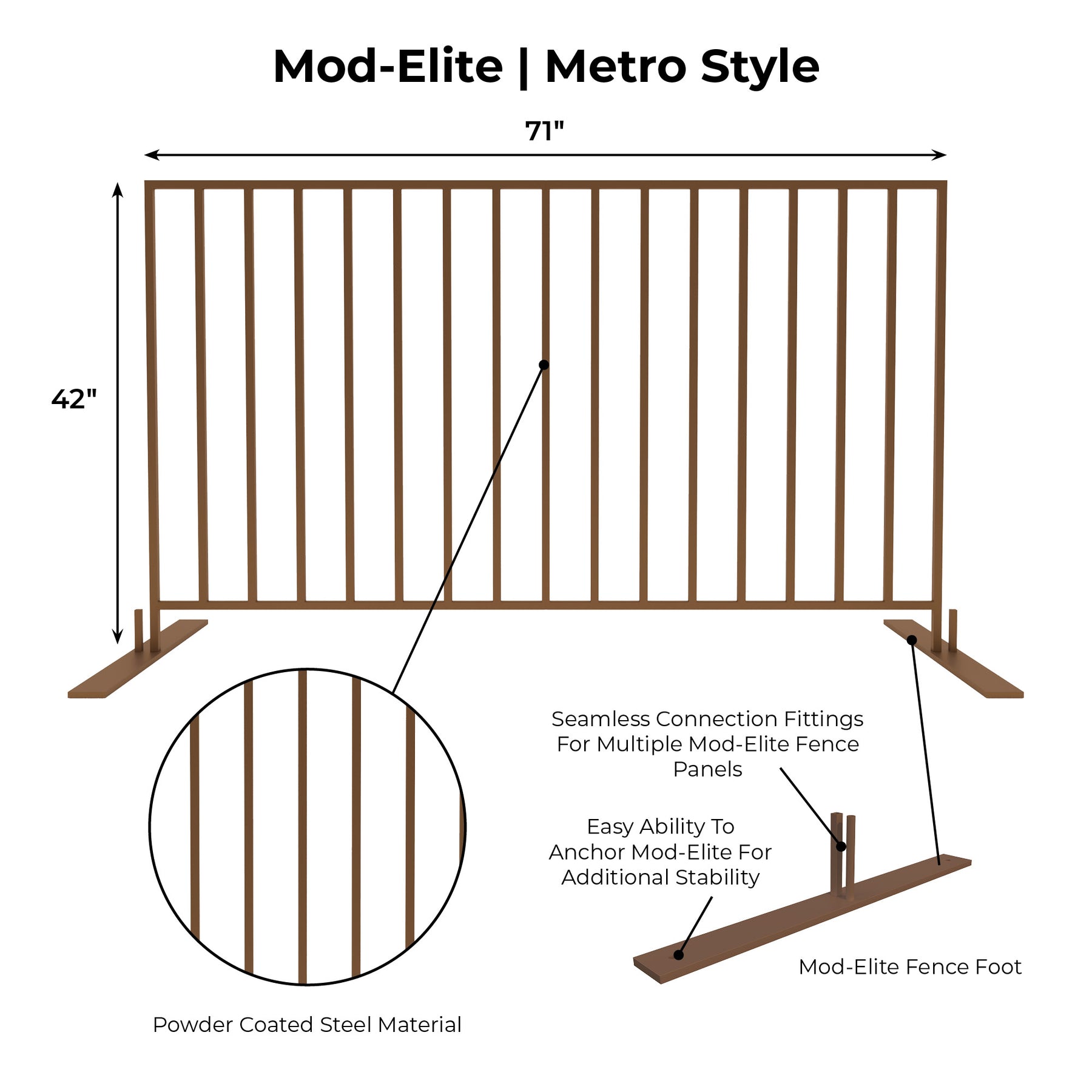 Light enough to be transported with ease, yet sturdy enough to handle larger crowds, Mod-Fence is manufactured with durability in mind and is a great solution for all your temporary and portable event fencing needs.